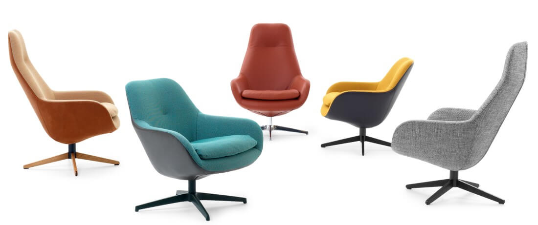 Dankzij de licht mee-verende rug en de comfortabele zitkuip biedt LX389 een actieve, maar tegelijkertijd ontspannende zitpositie die tot zijn recht komt in allerlei projecten, van een open kantoorruimte tot een ontvangsthal.