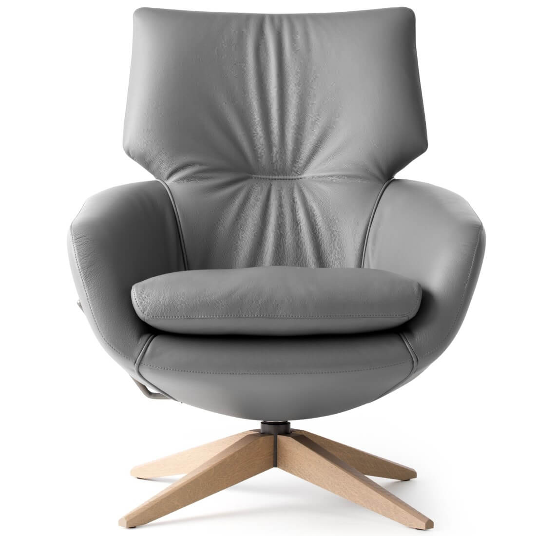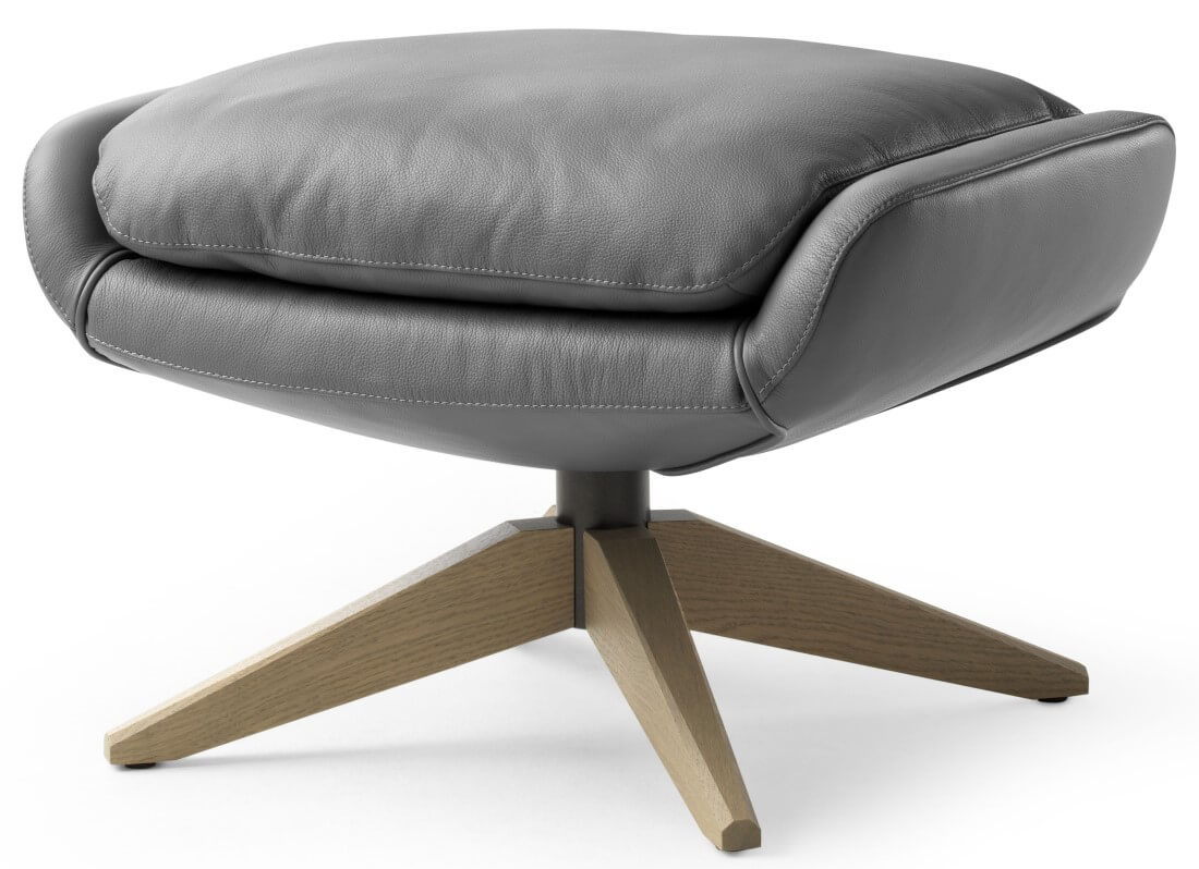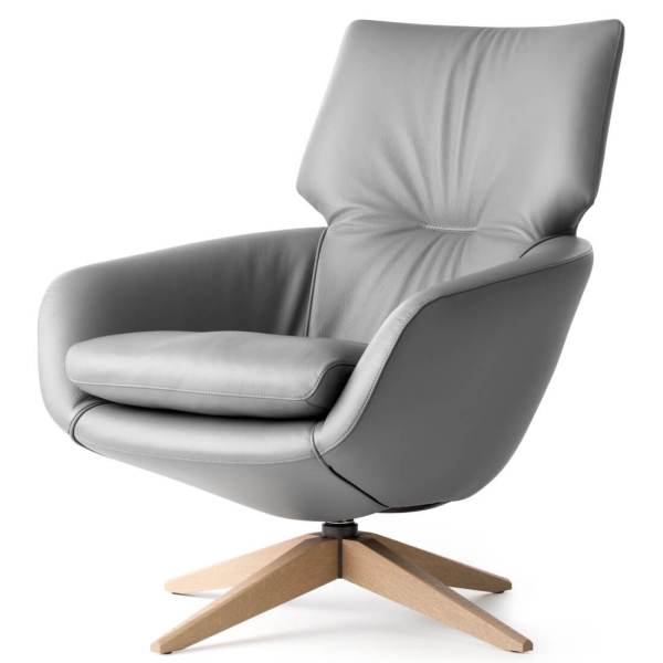 De bekleding van binnen- en buitenzijde is apart te kiezen en er loopt een decoratieve bies langs de zitkuip, die in diverse bekledingsmaterialen uit te voeren is. Ook is de fauteuil met neigmechaniek en zowel een massief houten als een metalen voet leverbaar.