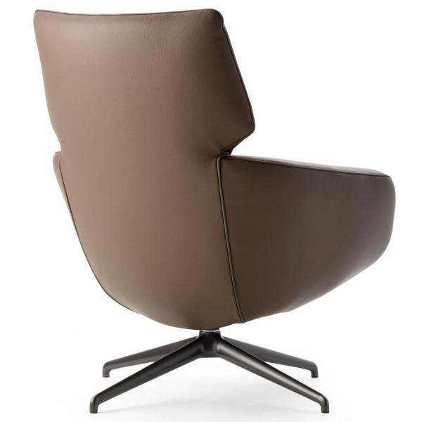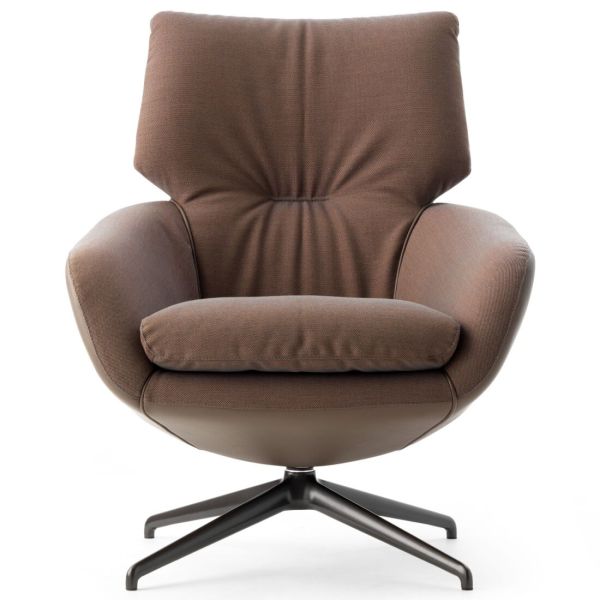 De bekleding van binnen- en buitenzijde is apart te kiezen en er loopt een decoratieve bies langs de zitkuip, die in diverse bekledingsmaterialen uit te voeren is. Ook is de fauteuil met neigmechaniek en zowel een massief houten als een metalen voet leverbaar.