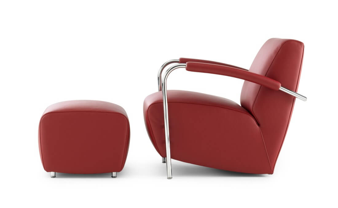 Het buizenframe dat rondom de zitting loopt is leverbaar in chroom, maar ook in diverse een epoxykleuren die Leolux LX in de collectie heeft. Er is een hoog mogel, een laag model en een bijpassend voetenbankje verkrijgbaar.