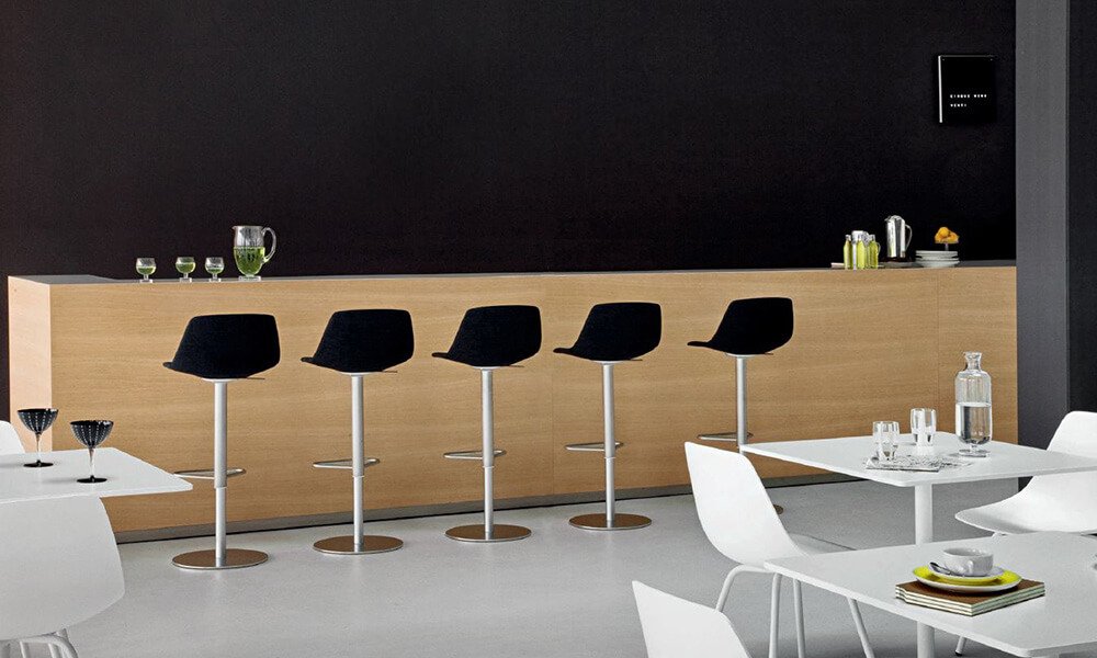 De Miunn barkruk is ontworpen door Karri Monni voor Lapalma. De kruk is in drie verschillende hoogtes of in hoogte verstelbaar met verstelbare zitting. Roestvrij stalen basis bedekt met een roestvrijstalen plaat met linnenstofpatroon.