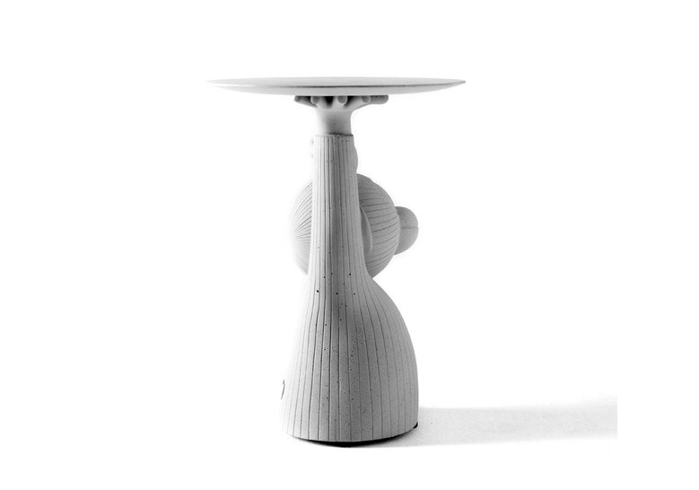 Bijzettafel gemaakt van massief grijs beton, geschikt voor binnen en buiten gebruik. Glijders inbegrepen.