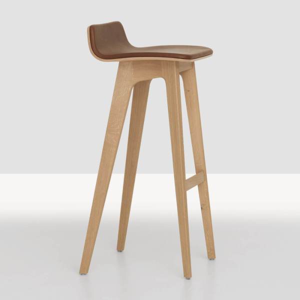 De Moprh barkruk is ontworpen door Formstelle voor Zeitraum. Verkrijgbaar in eiken of Amerikaans notenhout. Met of zonder stoffering (opdek of volledig).
