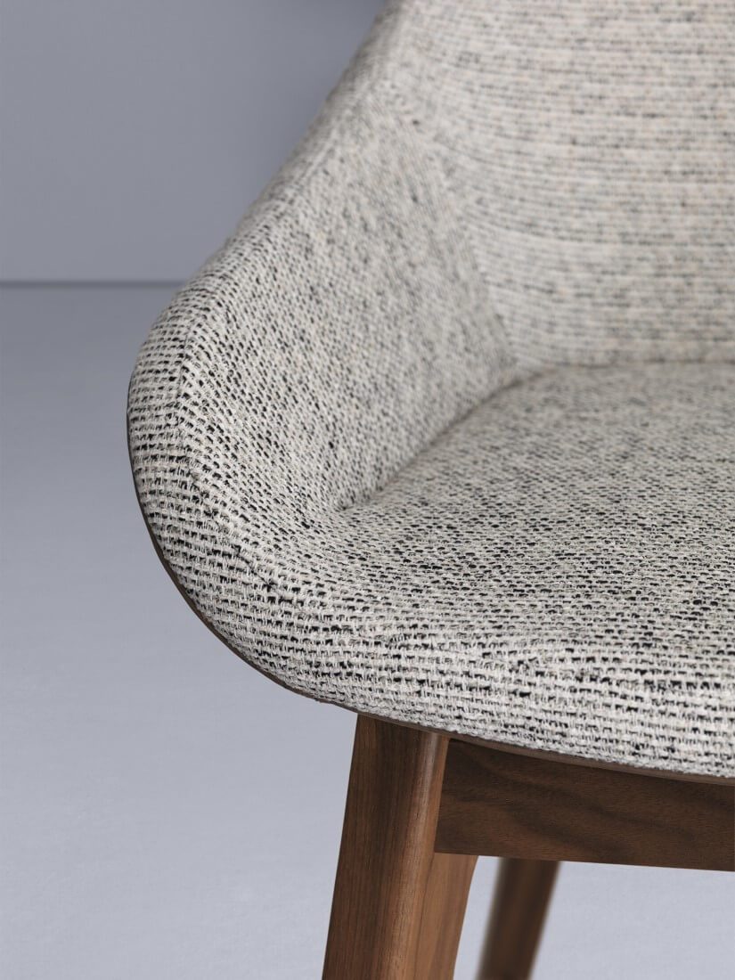 De Morph Dining chair is ontworpen door Formstelle voor Zeitraum. De stoffeerde armstoel kan worden uitgevoerd met en onderstel van eiken of Amerikaans notenhout onderstel.