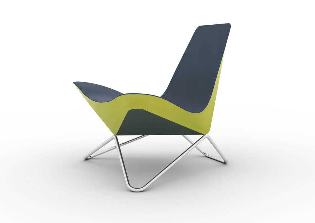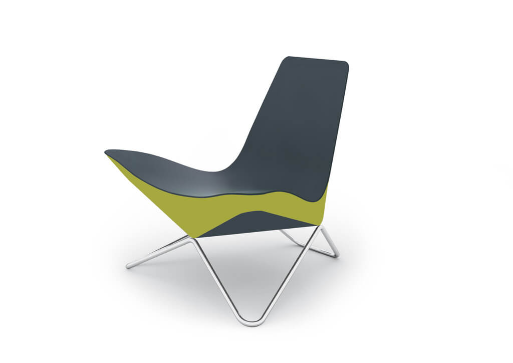 A new slant on things. MYchair is a sculpture in space. Sweeping and expressive. Impressive from all angles. Slanting, rounded and straight areas give way to each other. The base, seat and back of the lounge chair form a powerful composition. The upholstery traces convex and concave shapes. Intense colours create dynamic duets. The lounge chair is appealing and comfortable, and invites you to read, dream and relax. Enjoy the per-spective.