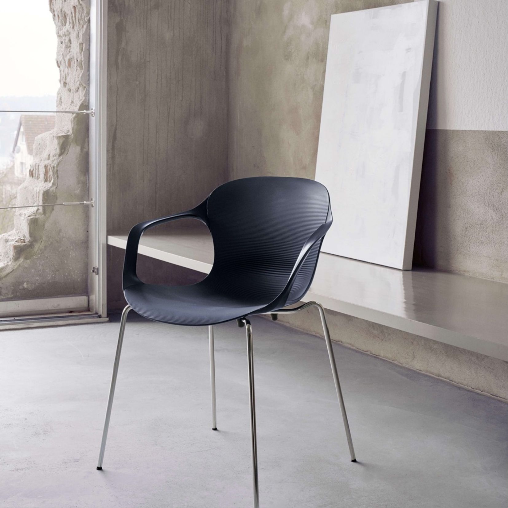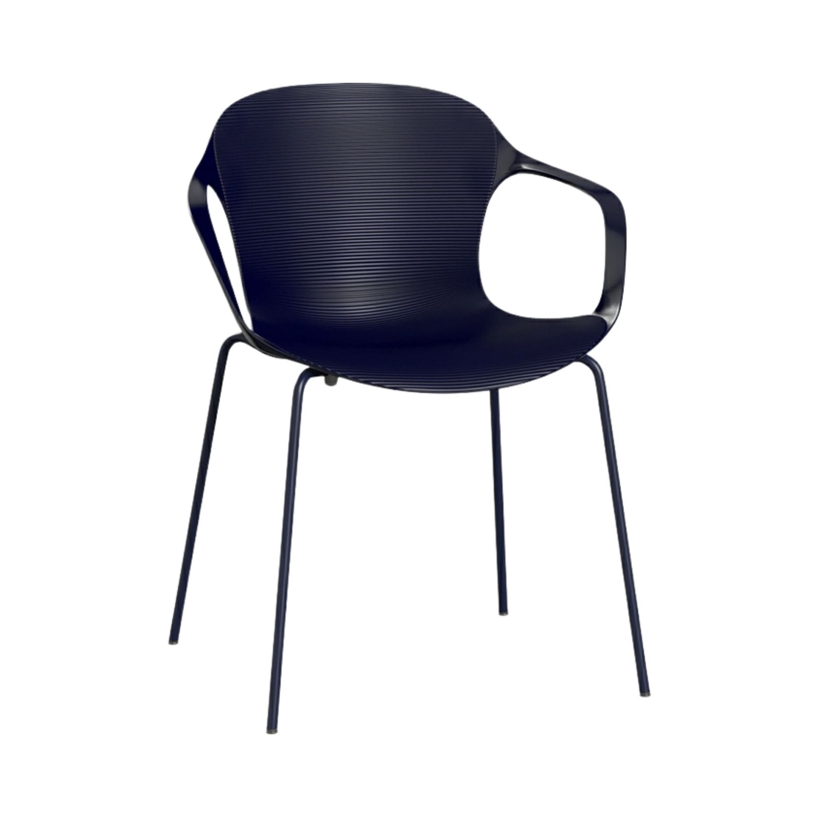 De NAP Chair stoel met armleuningen heeft een breedte van 62 centimeter, een diepte van 51 centimeter en een hoogte van 77 centimeter. De zithoogte is 45 centimeter. De zitting is gemaakt van polyamide en TPE (Thermal Plastic Elastomer) en het onderstel is van verchroomd staal of hout. De achterzijde van de zitting heeft een hoogglanzende afwerking, de voorzijde is mat en heeft ribbels. De stoel is standaard leverbaar in twee kleuren: wit en zwart. De NAP Chair stoel is ook nog leverbaar in talloze andere configuraties.