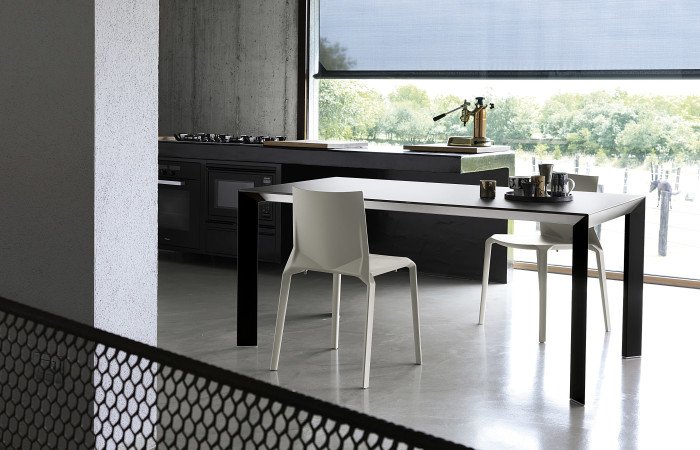 De Nori van Bartoli Design voor Kristalia is er als vaste tafel, maar ook als uitschuiftafel. Zeer eenvoudig en de bladen kunnen in een bak onder in het frame. Leverbaar in vele maten en verschillende materialen.