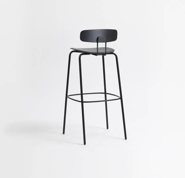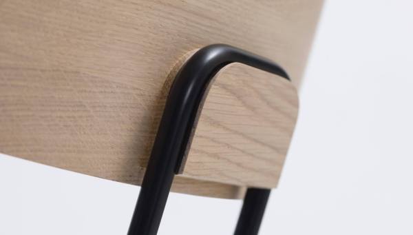 The Okito bar stool was designed by Läufer + Keichel for Zeitraum. The molded wooden seat contributes to the seating comfort. The base has a black, matt powder coating (RAL 9005). The bar stool is available with a seat height of 65 or 80 centimetres. The stool is made of solid oak as standard. In addition, the stool is available in plywood finished with wood veneer or in solid American walnut.