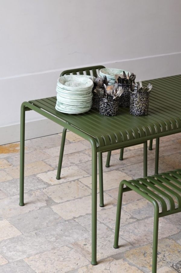 De Hay Palissade Table is ontworpen door Ronan & Erwan Bouroullec. De tafel is gemaakt van elektro-gegalvaniseerd staal en voorzien van een poedercoating. Hierdoor zijn de Palissade tafels geschikt voor buiten.