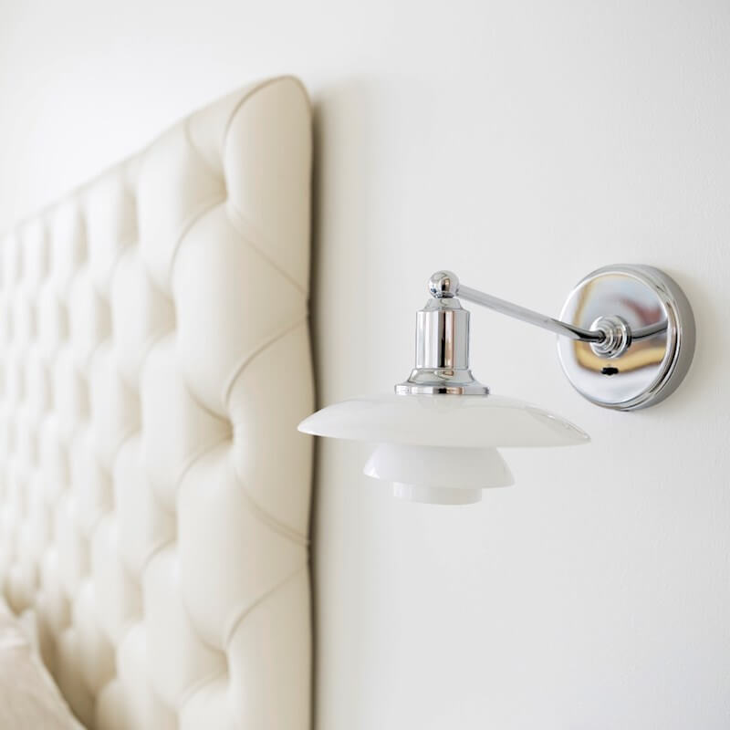 Kleur: Wit opaalglas. Hoogglans verchroomd.