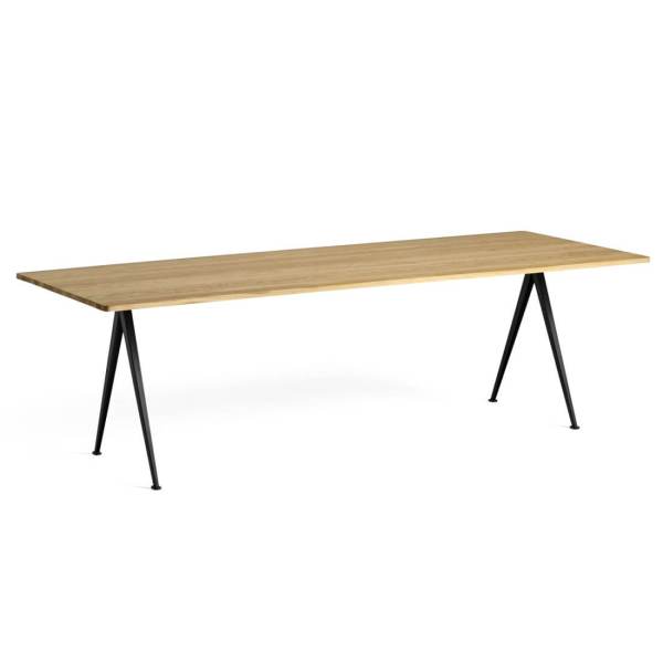 Pyramid 02 tafel van Hay is een ontwerp van Wim Rietveld. De tafel heeft een dunne basis van plaatstaal met een eiken tafelblad voor een functionele en overzichtelijke expressie. Het lichte ontwerp en de slijtvaste kwaliteit maken het geschikt voor gebruik in onderwijsinstellingen en bedrijfsomgevingen. Dit model biedt plaats voor zes tot acht personen.