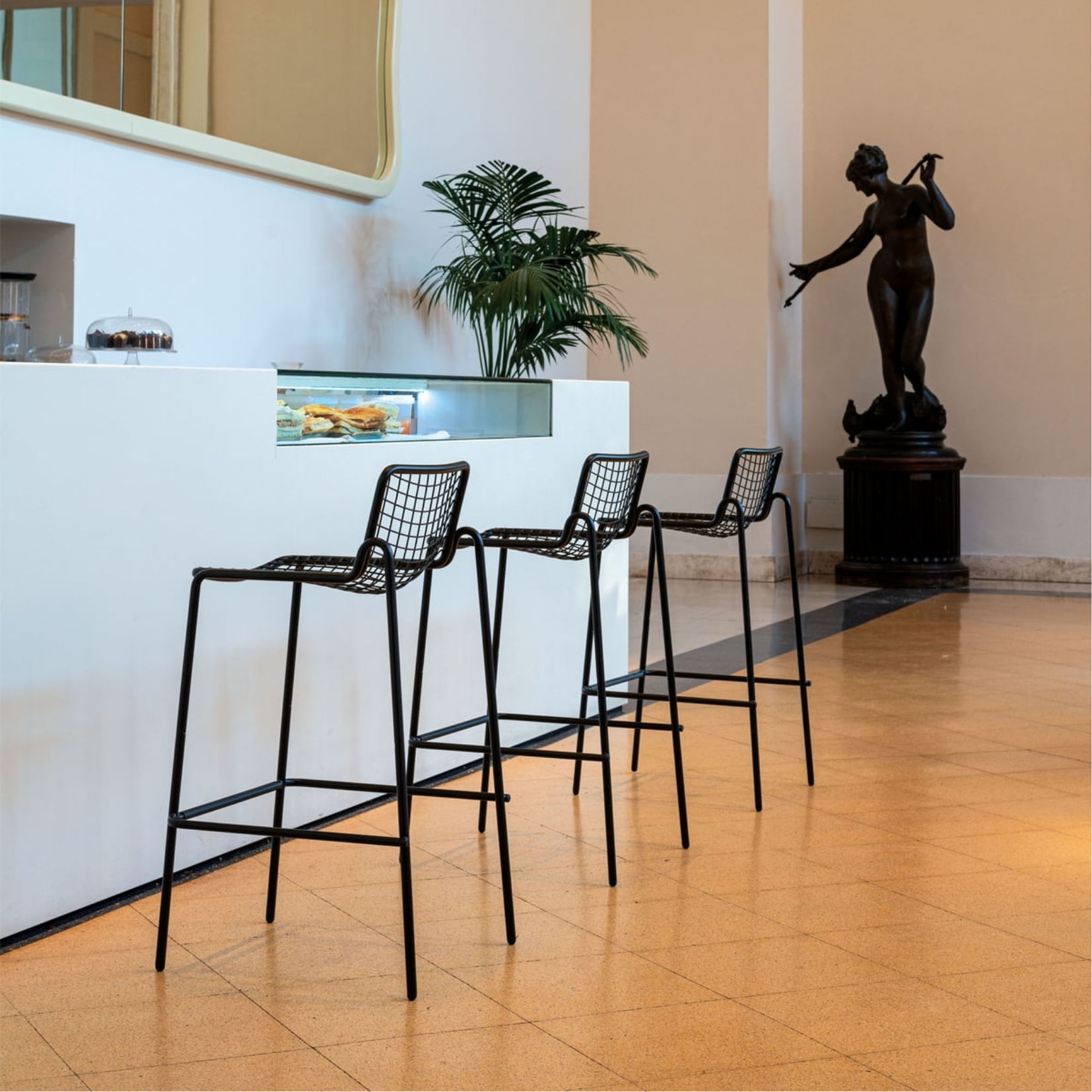Dankzij de roosterstructuur ontstaat een luchtige en lichte uitstraling, waardoor de Rio R50 barkruk perfect past in elke buitenomgeving.