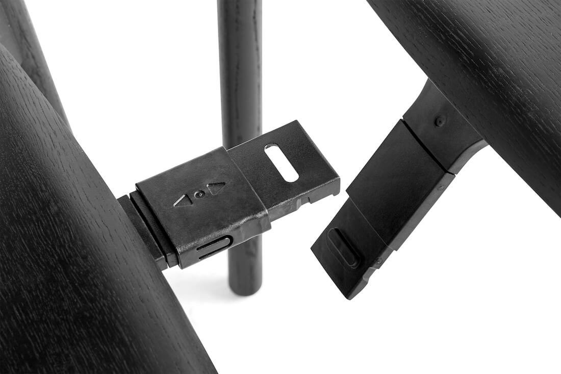 Het eikenhout is verkrijgbaar in mat gelakt, zwart gebeitst, transparant gelakt, soft black gebeitst, soft grey gebeitst, dusty green gebeitst, fall red gebeitst, hunter gebeitst en zitting smoked met transparant gelakte poten.