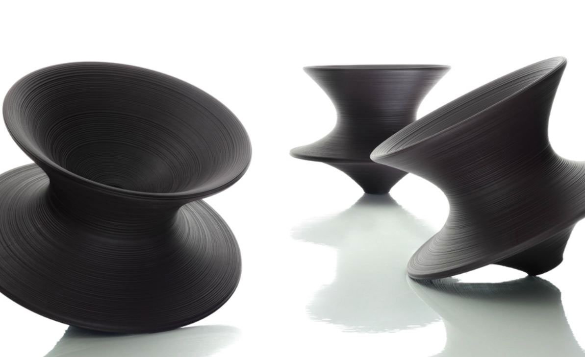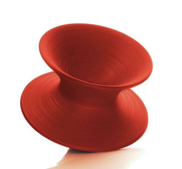 De Spun van Magis is ontworpen door Thomas Heatherwick. Deze roterende stoel is geschikt voor buitengebruik.