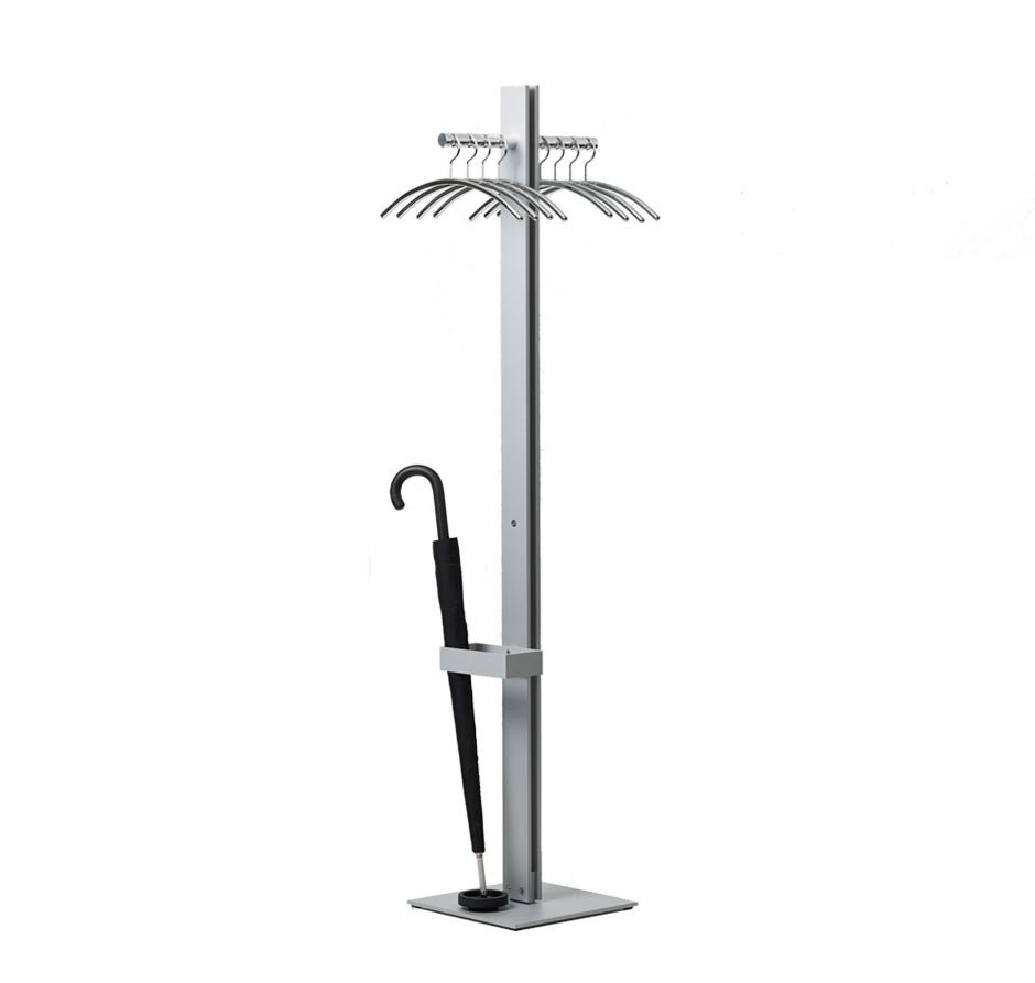 Standfree is een stijlvolle eyecatcher. De symmetrische vorm en gepolijste aluminium accenten geven de kapstok een formele, representatieve uitstraling. De garderobestang is voorzien van rillen. Jassen hangen hierdoor altijd op gepaste afstand van elkaar. Naast aluminiumgrijs (RAL9006), is Standfree nu ook standaard leverbaar in twee nieuwe kleuren: wit (RAL9016) en antraciet (iron glance).