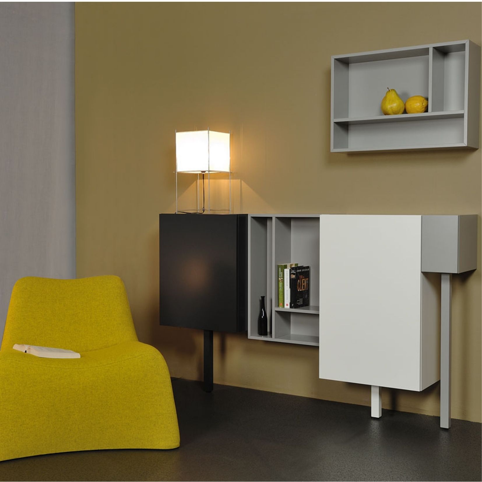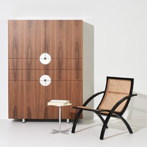 Eigenwijs balancerend op één poot zijn de Sticks kastjes op een rijtje, in een groepje of als enkel kastje in te zetten. Gerard de Hoop heeft ze in 4 breedte- en 4 hoogtematen en ook nog eens met 4 pootlengtes ontworpen, dus van nachtkastje tot torenkastje, van dressoir tot halkastje, de Sticks zijn overal toe te passen.