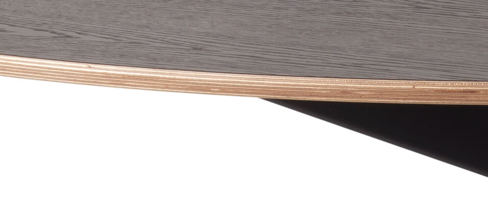 De tafel TE 06 is een ontwerp van Martin Visser. Met mat verchroomde centraalpoot en onder en boven drie gelakte tenen. Het blad bestaat uit berken multiplex met als top een keuze tussen Amerikaans notenfineer, Eiken kern gerookt fineer, HPL wit of Fenix (wit of zwart).