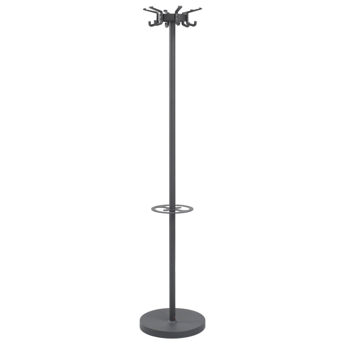De Tertio Juno+ is ontworpen door Gerard Kerklaan voor VanEsch. De vrijstaande kapstok is gemaakt van geëpoxeerd staal en heeft ruimte voor twaalf jassen. De kolom en parapluring zijn vrkrijgbaar in een donkergrijze of metallicgrijze structuurlak.