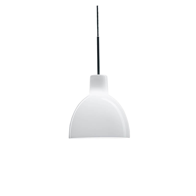 Materiaal (155/220): Ophanging: geborsteld, roestvrij staal. Scherm: mondgeblazen wit opaalglas.