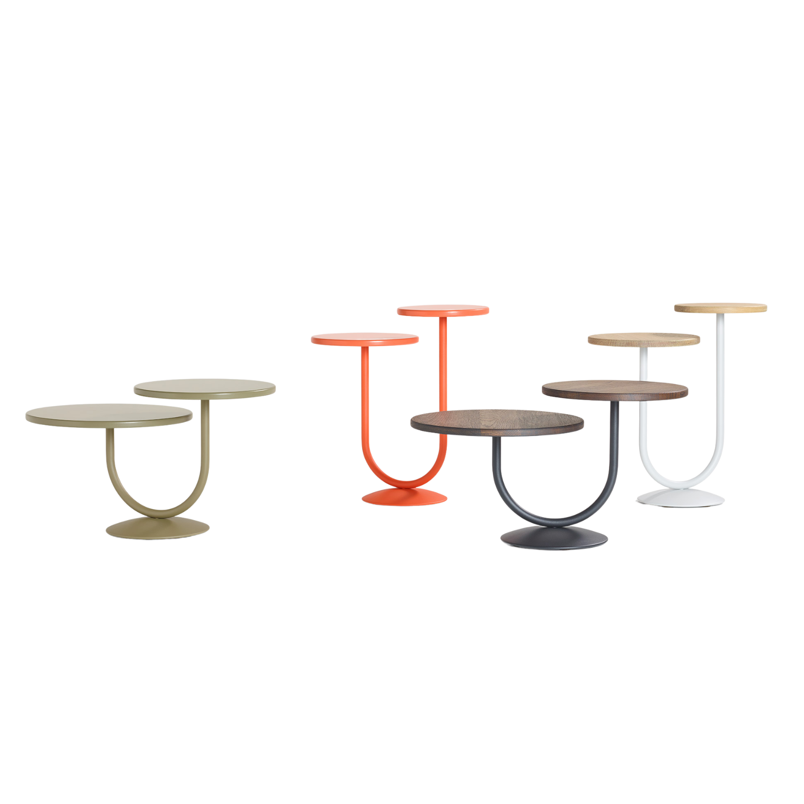 Deze mooie collectie van bijzettafels bestaat uit één onderstel en twee tafelbladen. Twins is leverbaar als een lage salontafel en als een hoge bijzettafel. De twee versies samen vormen een bijzonder mooie eenheid in je woonkamer, en zijn verkrijgbaar in diverse afwerkingen. ‘De afmetingen en verhoudingen zijn theatraal, maar zorgen ook dat de tafelbladen elkaar aanvullen’, legt ontwerpster Monika Mulder uit. ‘Ze zijn de rechter- en de linkerhand, de koffie en je notebook, de stille en de luide persoon.