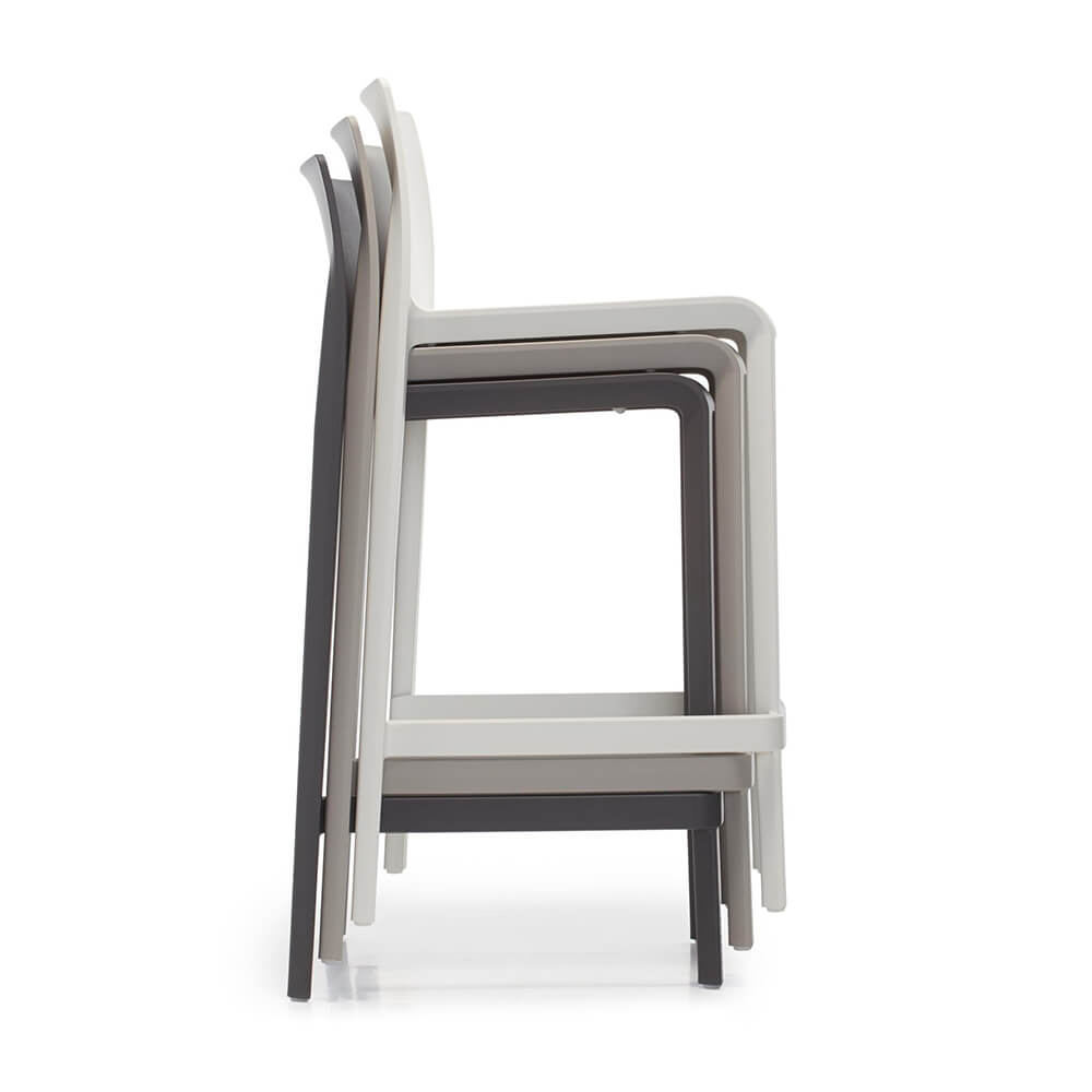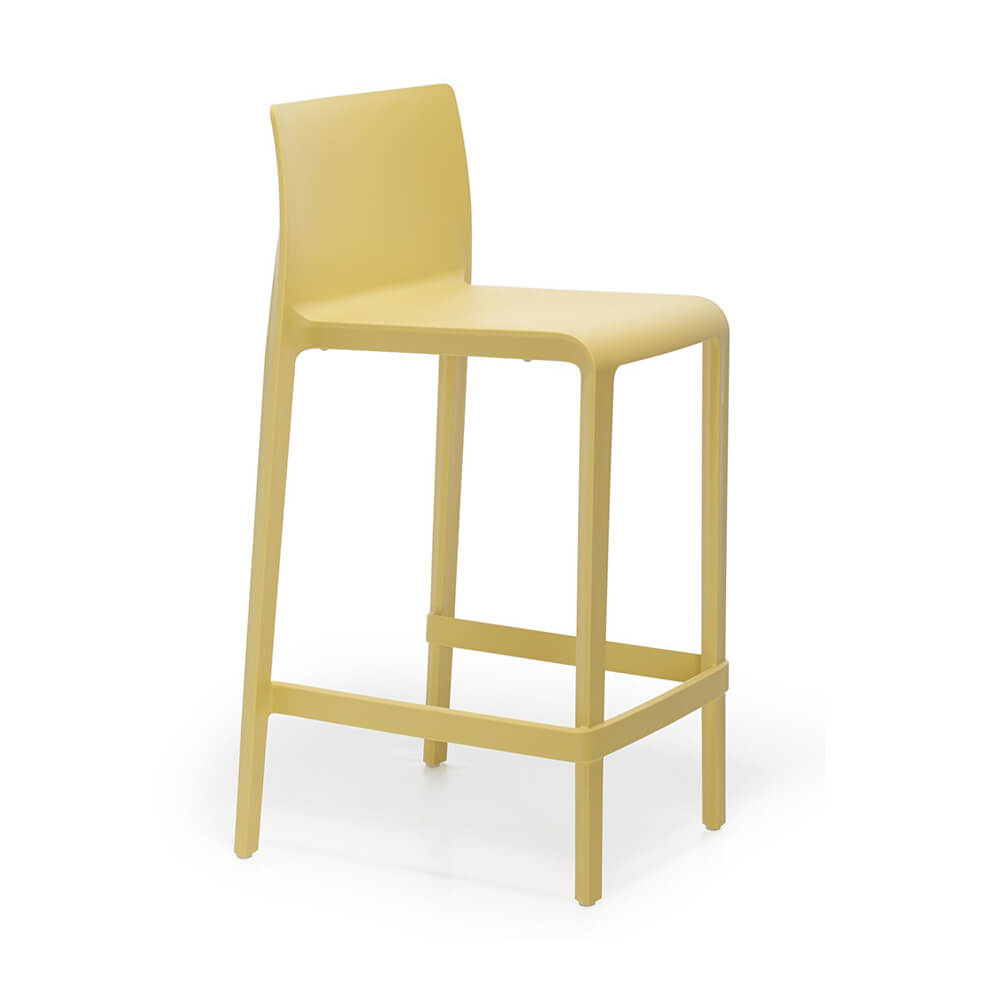 Volt van Pedrali is een ontwerp van Claudio Dondoli & Marco Pocci. Het compacte formaat en de ergonomische vorm van de barkruk zorgen voor functionaliteit en comfort. Stapelbaar dankzij de voetsteun aan drie zijden. Gemaakt van polypropyleen versterkt met glasvezel. Verkrijgbaar in dezelfde kleuren als de gelijknamige stoel. Zithoogte 765 mm.