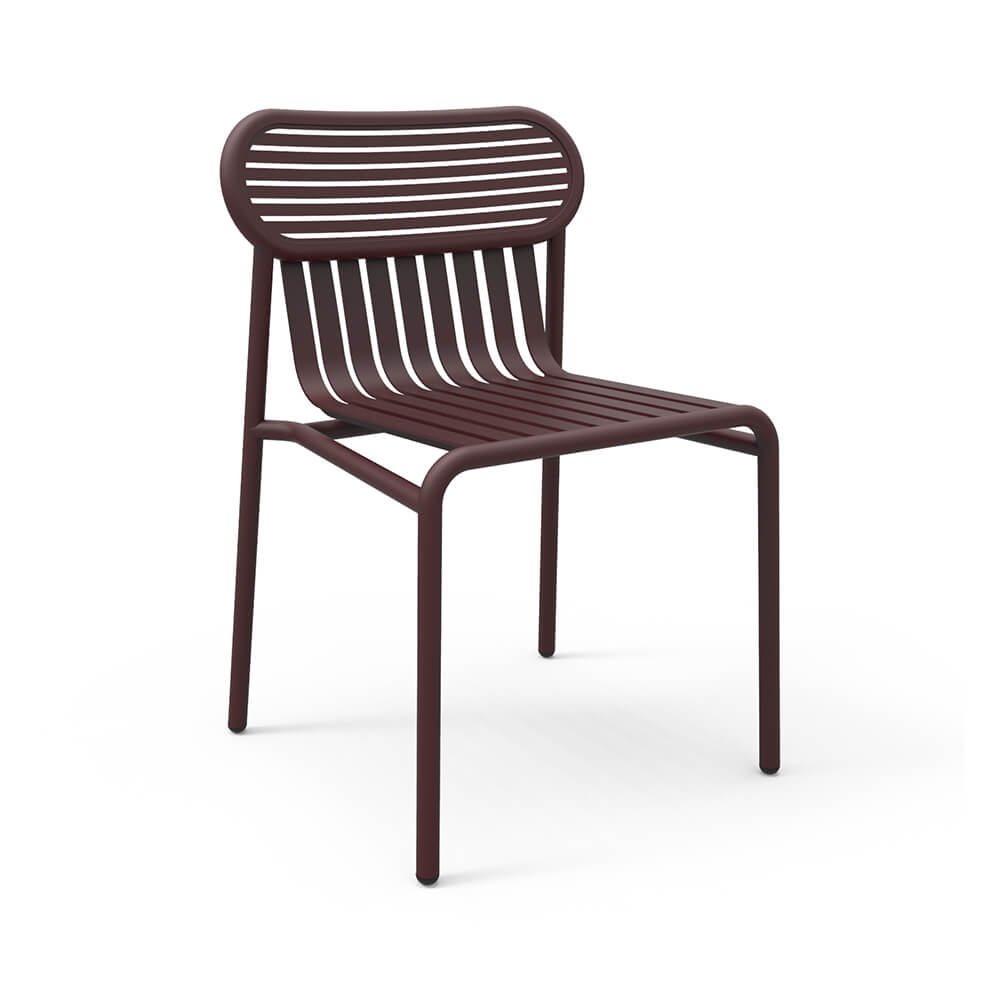 De Week-End Chair is een ontwerp van Studio BrichetZiegler voor de Week-End collectie van Petite Friture. De tuinstoel is onderdeel van een compleet assortiment outdoor meubilair waar de ovale en ronde vormen in combinatie met de contrasterende lamellen samen een grafisch geheel vormen.