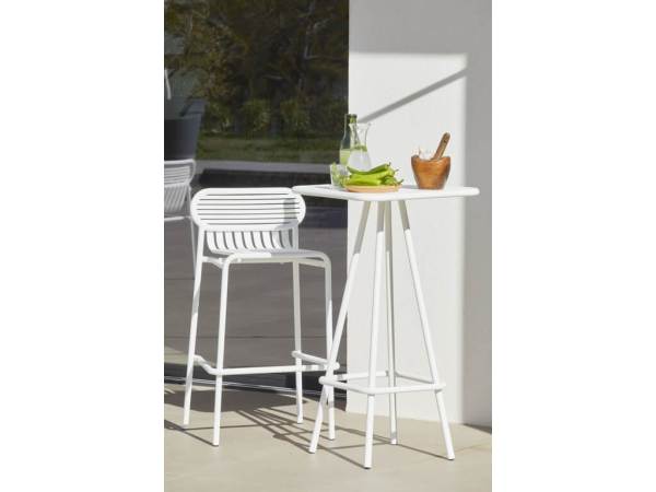 De High bar table van Petite Friture is een ontwerp van Studio BrichetZiegler. Deze statafel is onderdeel van de Week-End collectie die bestaat een een compleet assortiment tuinmeubilair. De ovale en ronde vormen in combinatie met de contrasterende lamellen maken samen een grafisch geheel.
