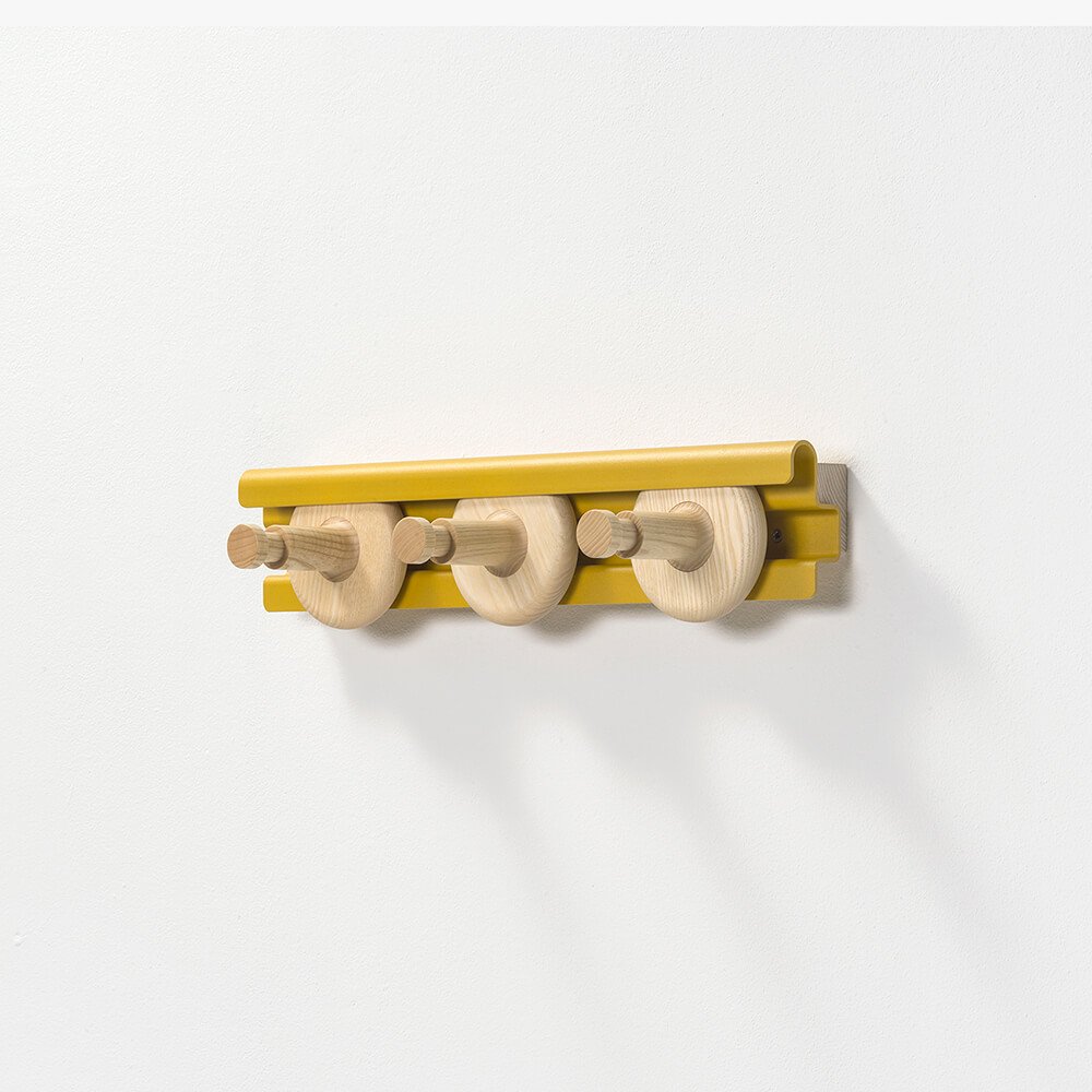 Hakenprofiel Wheels van Van Esch, ontworpen door de Nederlandse designer Dirk Ploos van Amstel, is praktisch in gebruik. De haken van deze kapstok zijn tegelijkertijd wieltjes. Hierdoor kan de ruimte tussen de haken worden vergroot of verkleind. De kapstok kan zo in een handomdraai worden aangepast aan het aantal jassen. De warme en no-nonsense uitstraling van Wheels wordt bepaald door de combinatie van mat geëpoxeerd aluminium en helder essenhout.
