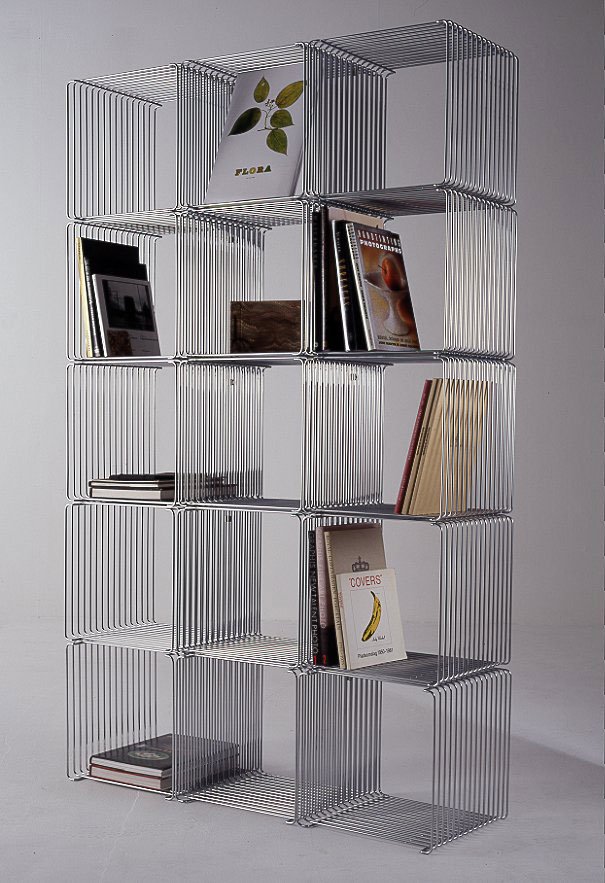 De Panton draadkubus biedt de nodige flexibiliteit. De draadkubussen zijn geschikt voor een lichte room divider, interieur, winkel en bibliotheek. De kubussen kunnen worden afgewerkt met een bovenplaat (1 of 2 elementen breed) deze kan worden uitgevoerd in lak, gerookt glas of marmer. Combinaties met draadkubussen kunnen worden herschikt over en weer. De afmeting is 34,8 x 34,8 x 18,8 of 34,8 (d) cm en is gemaakt van 5 mm draad (chroom, donker chroom of gelakt)