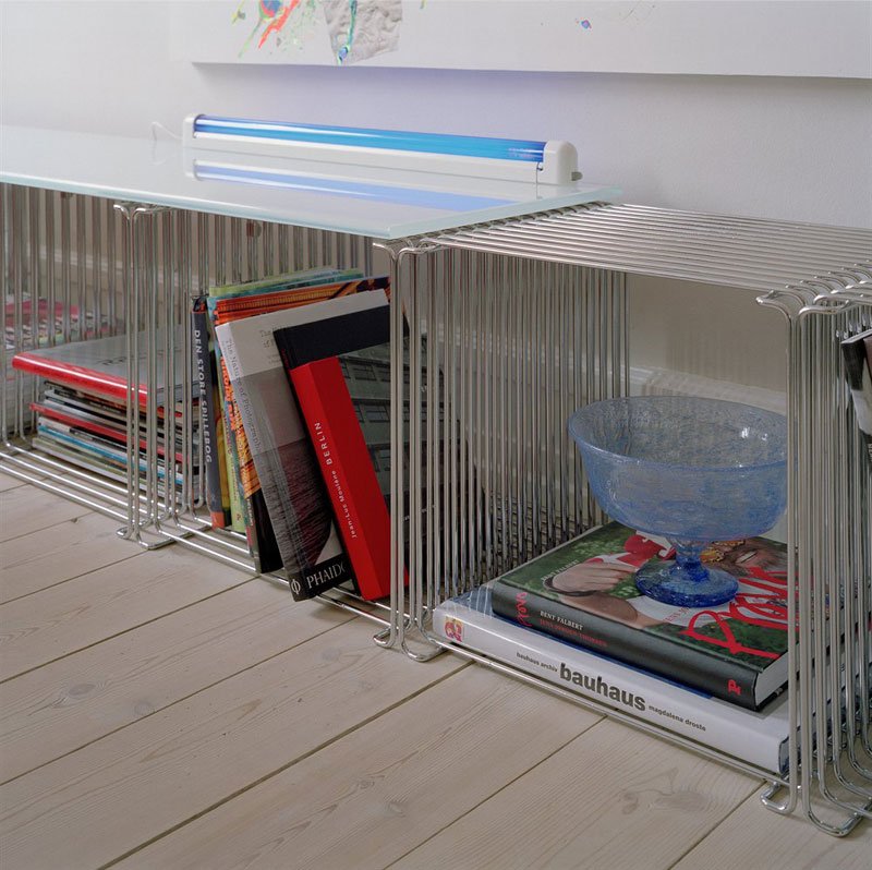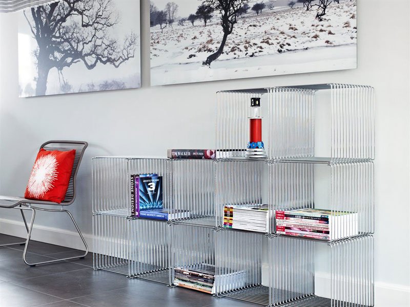De Panton draadkubus biedt de nodige flexibiliteit. De draadkubussen zijn geschikt voor een lichte room divider, interieur, winkel en bibliotheek. De kubussen kunnen worden afgewerkt met een bovenplaat (1 of 2 elementen breed) deze kan worden uitgevoerd in lak, gerookt glas of marmer. Combinaties met draadkubussen kunnen worden herschikt over en weer. De afmeting is 34,8 x 34,8 x 18,8 of 34,8 (d) cm en is gemaakt van 5 mm draad (chroom, donker chroom of gelakt)