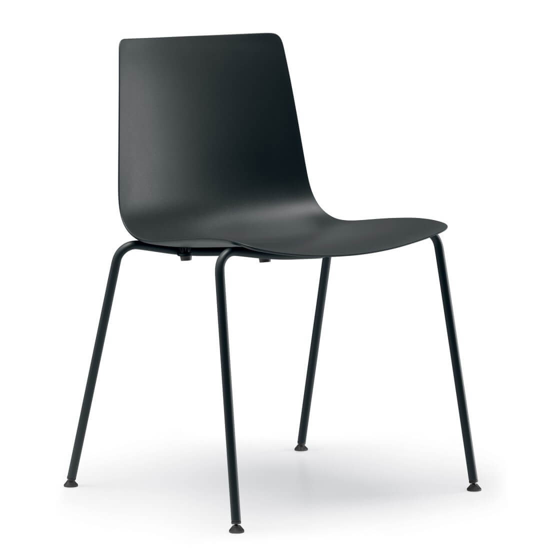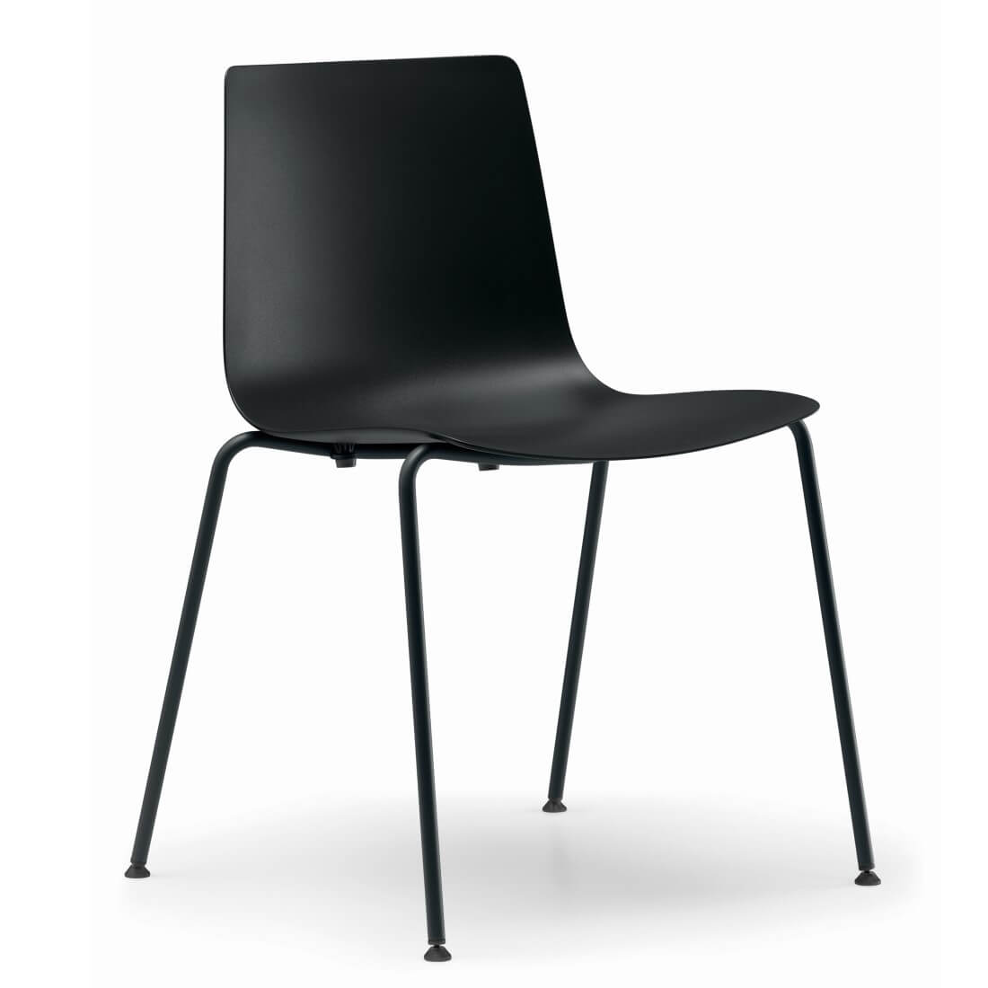 De Slim chair is ook leverbaar met armen of met een houten 4-poots onderstel. Deze serie van Alias is onderdeel van de Slim collectie waarin ook fauteuils, conferentie- en bureaustoelen zijn opgenomen.
