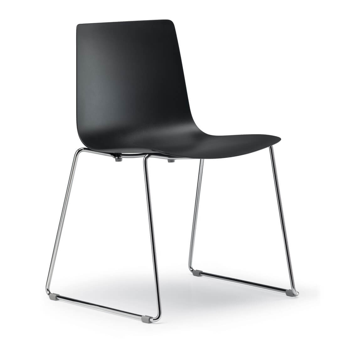 De Slim chair is ontworpen door PearsonLloyd voor Alias. Deze kunststof stoel is zowel met een slede als met een metalen 4-poot stapelbaar tot maximaal tien stuks.