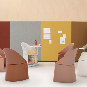 Belangrijk aspect hierbij is de flexibiliteit. Hiervoor zijn de wielen die zowel onder de zitkruk als de stoel en armstoel zitten. Een ander aspect was de functionaliteit. De stoel heeft onder de zitting plek voor boeken, laptops en tassen. Daarnaast is het mogelijk om te kiezen voor een ‘tafelblad’.