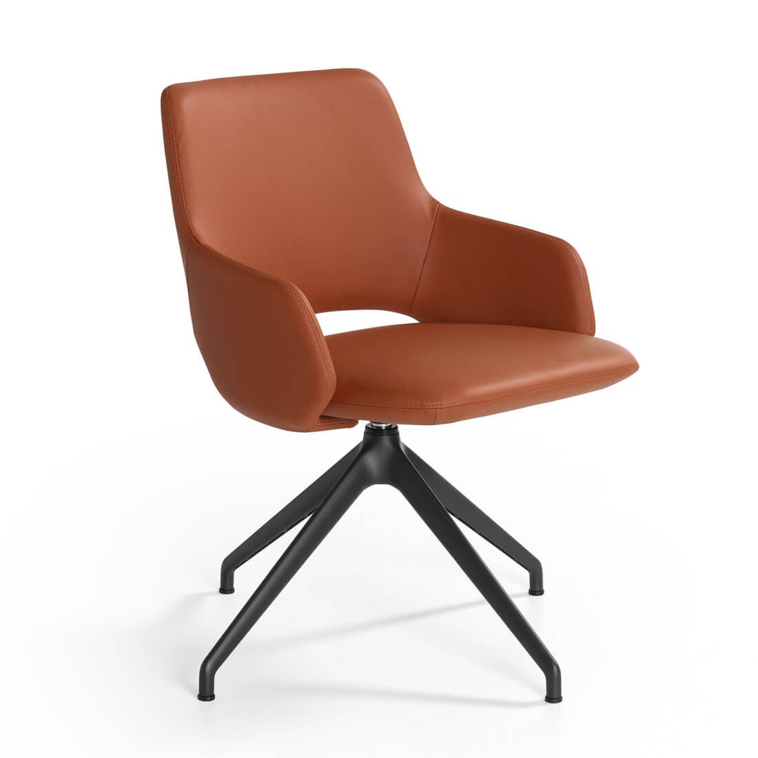 De Jima met een metalen 4-poot is leverbaar in een standaard poedercoatkleur, maar verchroomd is ook mogelijk. Het draaibaire 4-teens onderstel heeft geen return-mechanisme en is mogelijk in een poedercoating of in gepolijst aluminium.