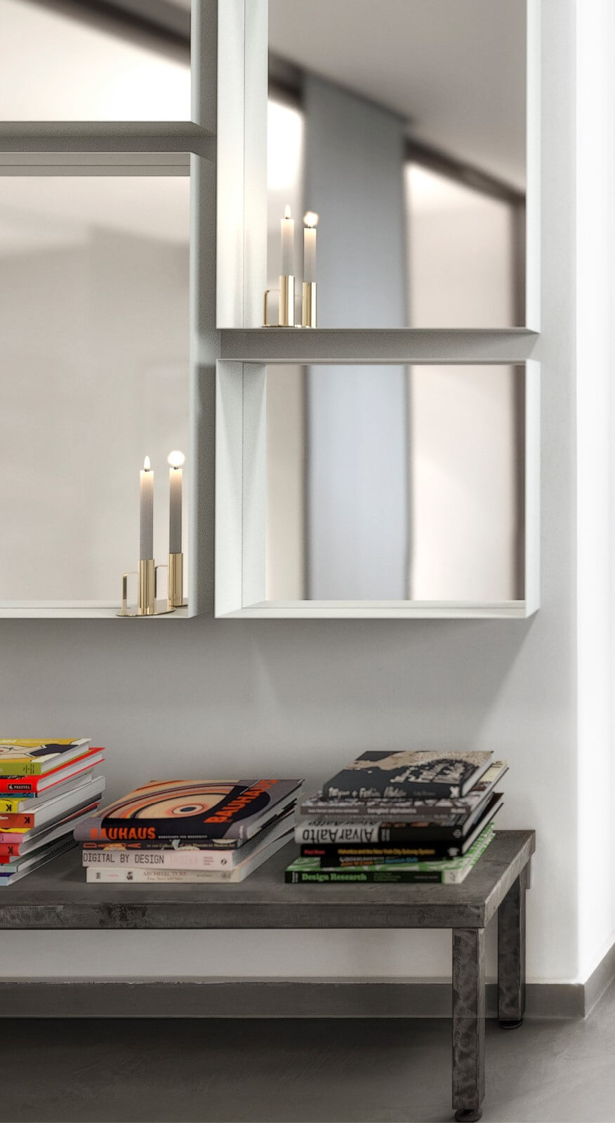 In de Unu collectie van Frost zijn ook wandspiegels met een haakje en een tafelspiegel opgenomen.