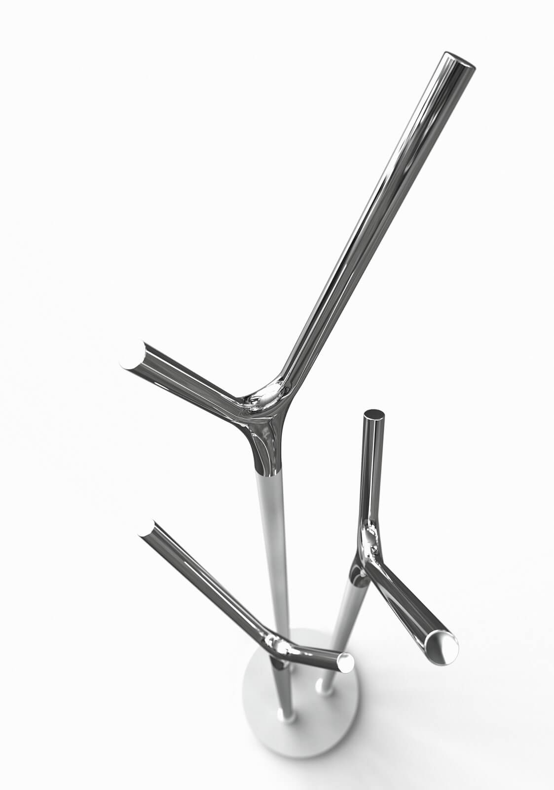 De Wishbone is ontworpen door Bush+Hertzog voor Frost. De staande kapstok bestaat uit drie onderdelen die verschillen in hoogte. De stalen basis kan uitgevoerd worden in lime, rood, zwart, wit of met een brushed afwerking. Het bovenste gedeelte van de Wishbome is van roestvrijstaal en per basiskleur zijn er verschillende afwerkingen. Op het hoogste punt is de Wishbone 175 cm. De ronde voet heeft een doorsnede van 35 cm.