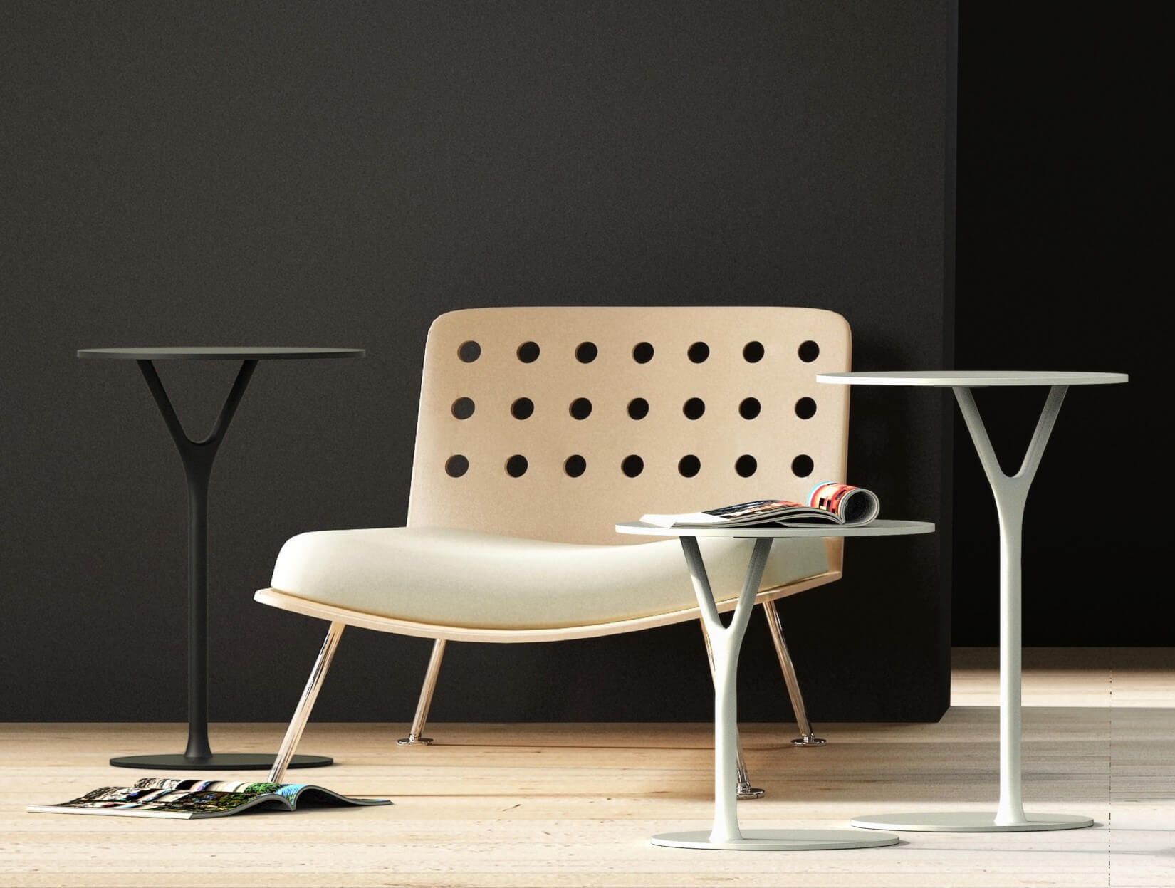 - Wishbone table 2: Ø45 x 65 x Ø35 cm