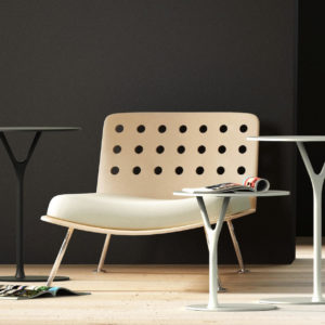 De Wishbone tafelserie is ontworpen door Busk+Hertzog voor Frost. De collectie is charismatisch en modern van uiterlijk. De asymmetrische plaatsing van de poot voegt dynamiek toe aan al het sterk visuele uiterlijk. Door de plaatsing van het frame kan de poot onder een bank of fauteuil worden geschoven.