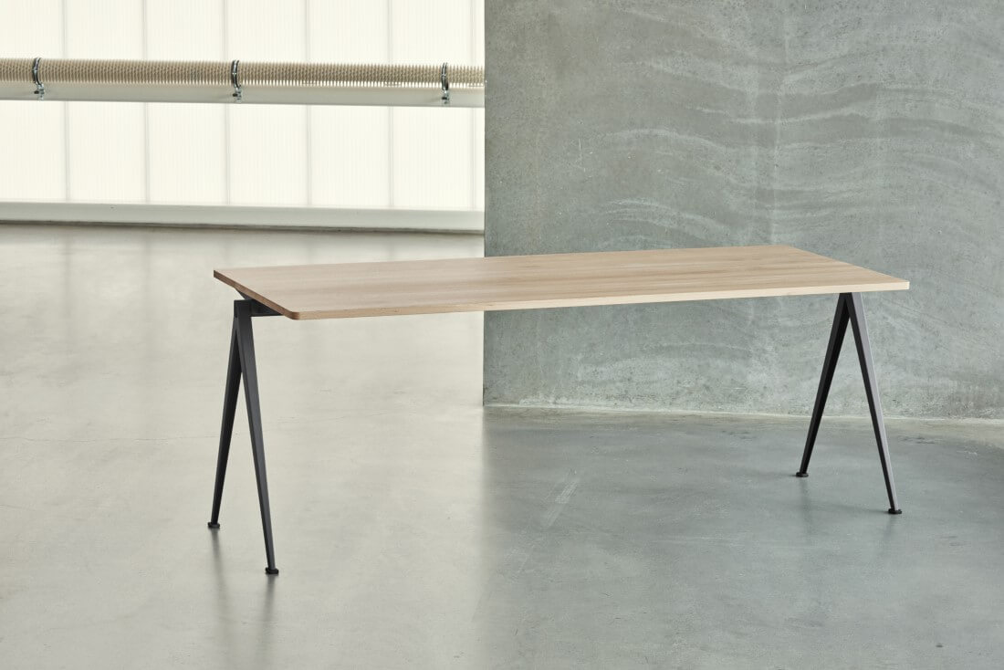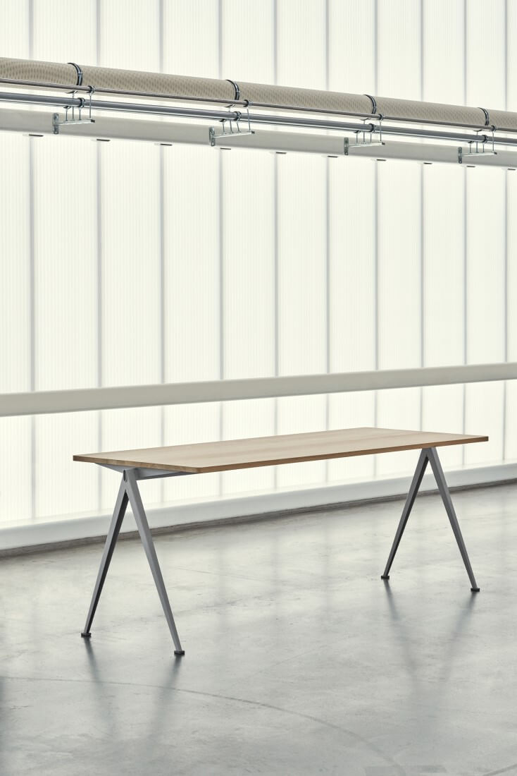 Pyramid 01 tafel van Hay is een ontwerp van Wim Rietveld. De tafel heeft een dunne basis van plaatstaal met een eiken tafelblad voor een functionele en overzichtelijke expressie. Het lichte ontwerp en de slijtvaste kwaliteit maken het geschikt voor gebruik in onderwijsinstellingen en bedrijfsomgevingen.