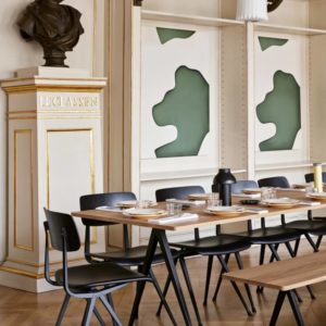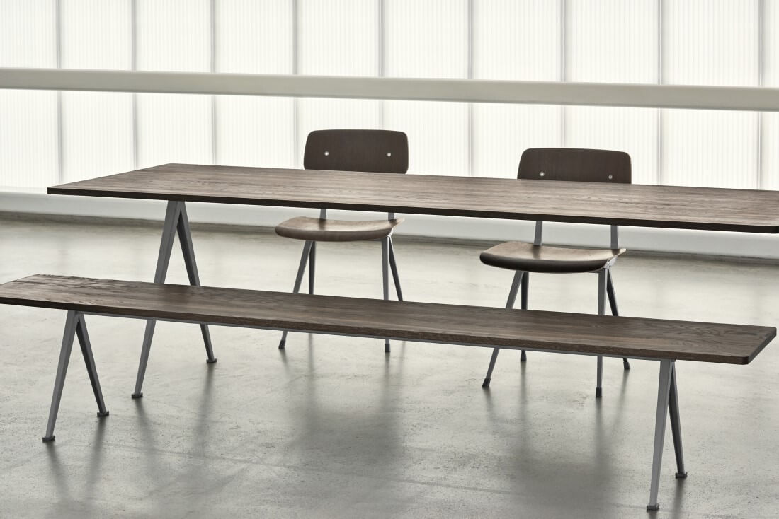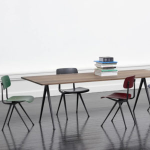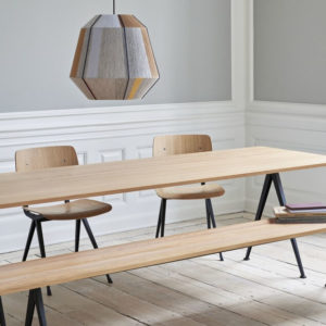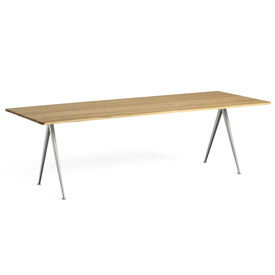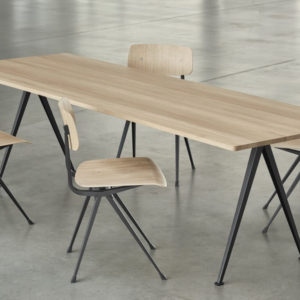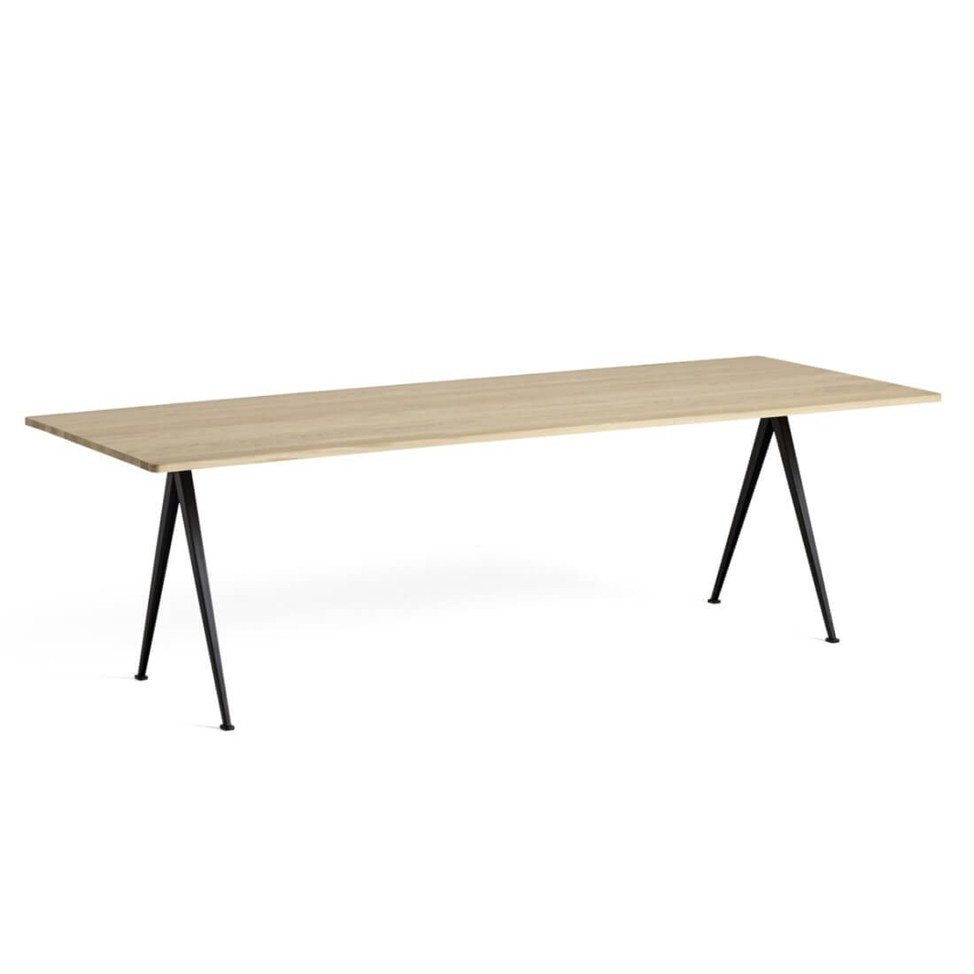 Pyramid 02 tafel van Hay is een ontwerp van Wim Rietveld. De tafel heeft een dunne basis van plaatstaal met een eiken tafelblad voor een functionele en overzichtelijke expressie. Het lichte ontwerp en de slijtvaste kwaliteit maken het geschikt voor gebruik in onderwijsinstellingen en bedrijfsomgevingen. Dit model biedt plaats voor zes tot acht personen.