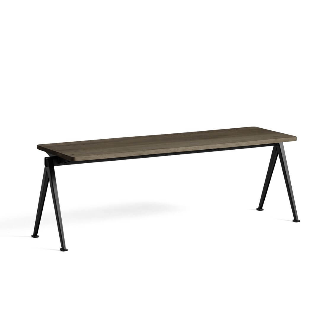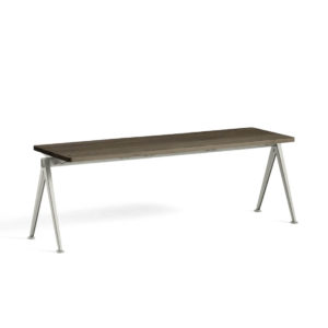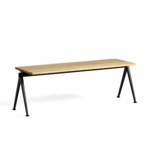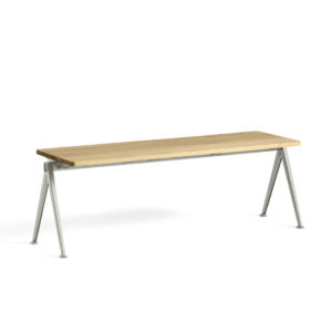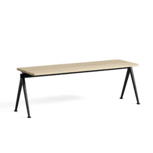 Pyramid bench van Hay is een ontwerp van Wim Rietveld. Deze bankvariant heeft een dunne basis van plaatstaal met een rechthoekige eikenhouten top die dezelfde functionele en overzichtelijke expressie heeft als de rest van de Pyramid-collectie. De schone esthetiek van de bank en de lichte, slijtvaste kwaliteit maken hem geschikt voor gebruik in vele huishoudelijke of zakelijke contexten.