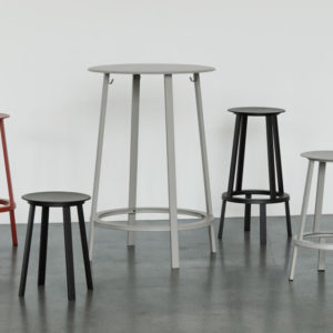 De Revolver statafel is ontworpen door Leon Ransmeier voor HAY. De tafel heeft dezelfde gebogen randen en een gevoel van symmetrie als de rest van de collectie.