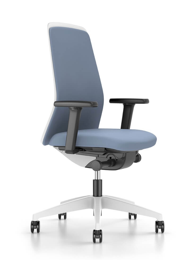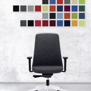 De Every is leverbaar met zwart of wit kunststof.Er zijn verschillende stoffen mogelijk, maar ook leer behoort tot de mogelijkheden. Hierdoor kan de bureaustoel ook qua uiterlijk goed aangepast worden aan de kantoorruimte.