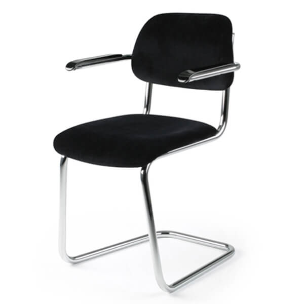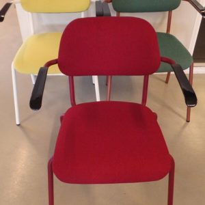De Jami stoel van Lande is ontworpen door Toine van den Heuvel. De retro stoel in ribstof is het schoolvoorbeeld van een klassieker die steeds opnieuw de juiste snaar raakt. Het tijdloze ontwerp zit comfortabel en door al z’n soberheid is de Jamin blijvend mooi. Naast het klassieke slede onderstel is het ook mogelijk de stoel uit te voeren met een 4-poots onderstel.