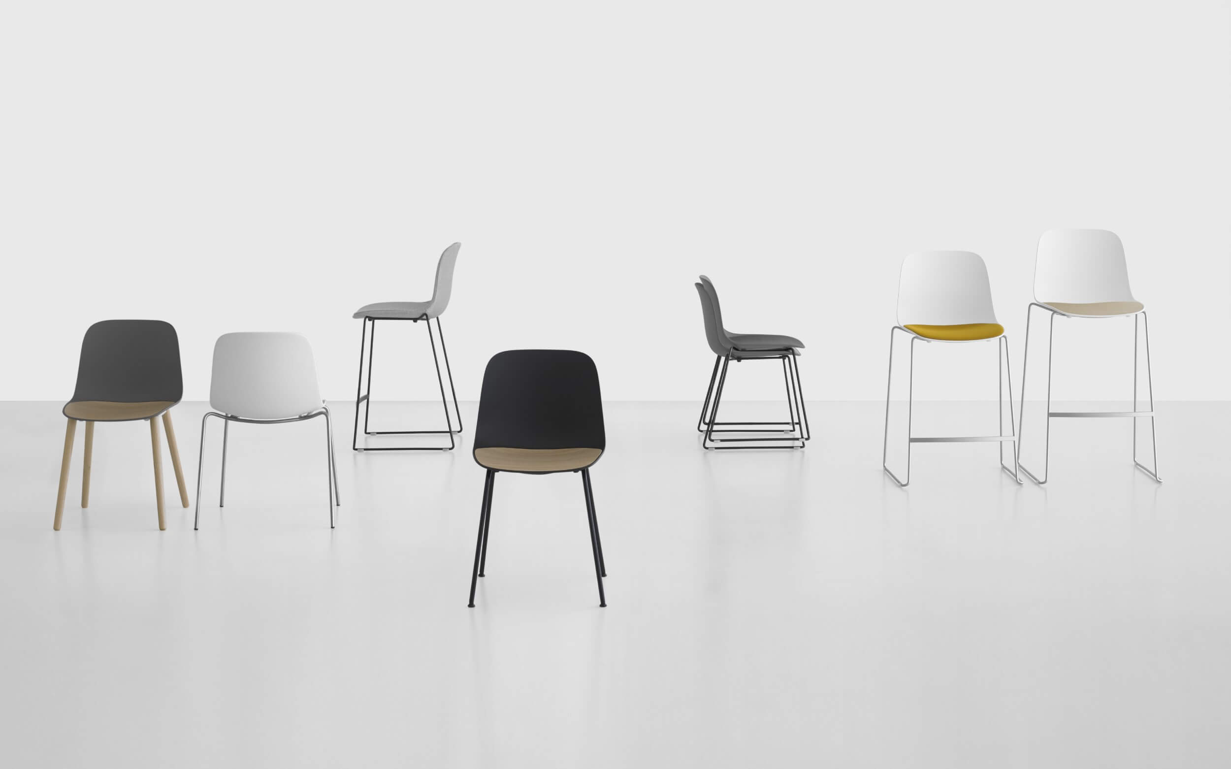 De Seela barkrukken van LaPalma zijn ontworpen door Antti Kotilainen. Alle krukken kunnen worden uitvoerd met een gestoffeerde zitpad, een houten zitpad, volledig gestoffeerd of volledig van kunststof. De Seela heeft een slede frame met voetsteun.