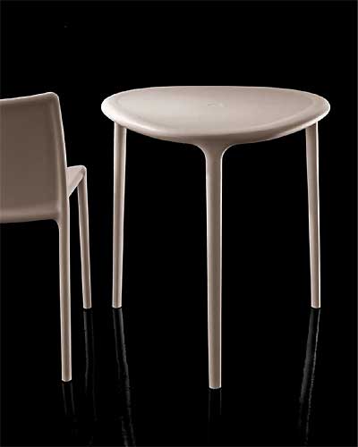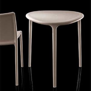 De kunststof tafel is verkrijgbaar in het wit en beige. De driehoekige tafel is echter alleen vekrijgbaar in het beige. In de Air collectie van Magis zit ook een stoel, armstoel en klapstoel.