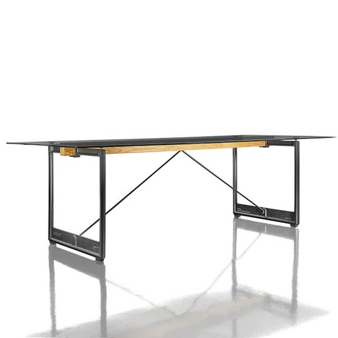 De rechthoekige Brut tafel heeft een afmeting van 205x85x73 cm of 260x85x73 cm. Er is zowel een indoor als een outdoor uitvoering. Er zijn verschillende kleuren en bladen mogelijk waaronder glas en eikenfineer.