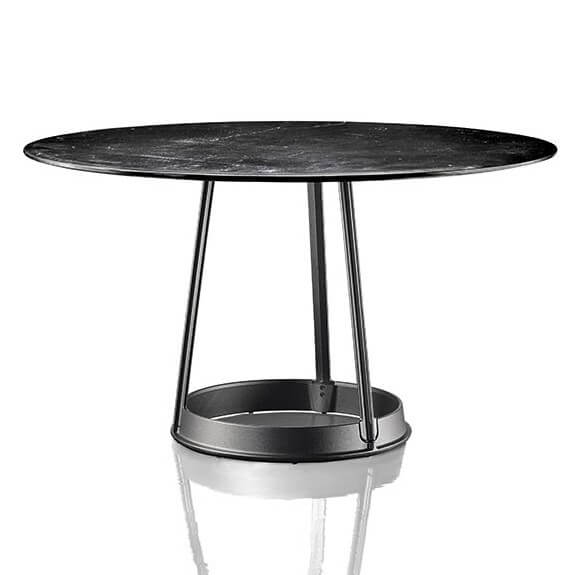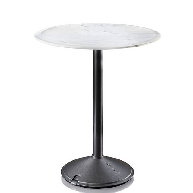 De ronde Brut bistro tafel heeft een doorsnede van 60 centimeter. De hoogte is, afhankelijk van het tafelblad, 72 of 73 centimeter. Er zijn zowel HPL-bladen als marmeren bladen mogelijk. Alle uitvoeringen zijn geschikt voor buitengebruikt. Voor binnengebruik is er ook een ronde Brut tafel. Deze heeft echter een doorsnede van 130 centimeter.