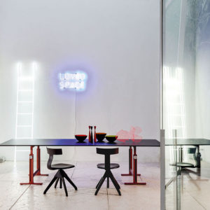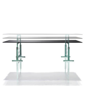 Daarnaast is er ook een rechthoekige tafel ontworpen die in drie hoogtes gezet kan worden. Dit model is enkel geschikt voor binnengebruik. Het blad heeft een afmeting van 290 bij 95 centimeter.