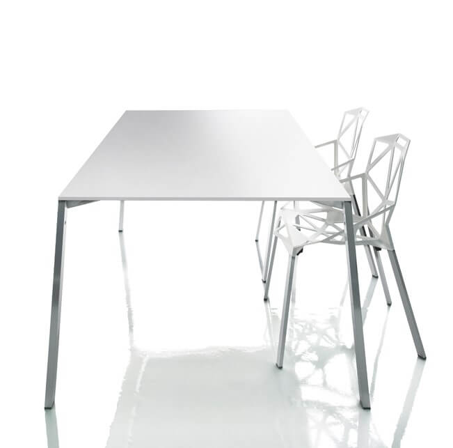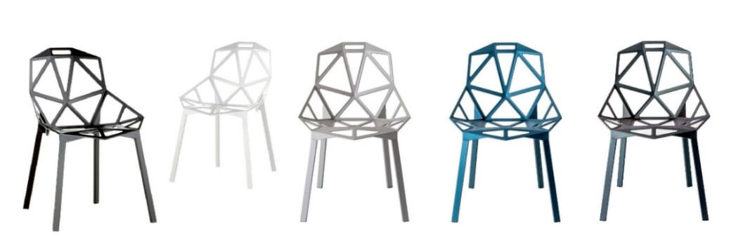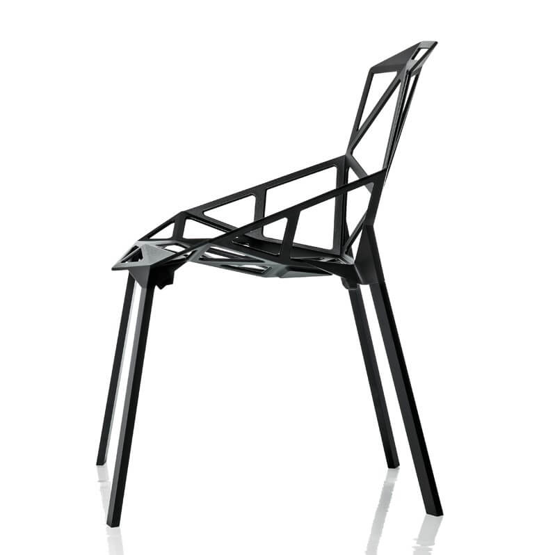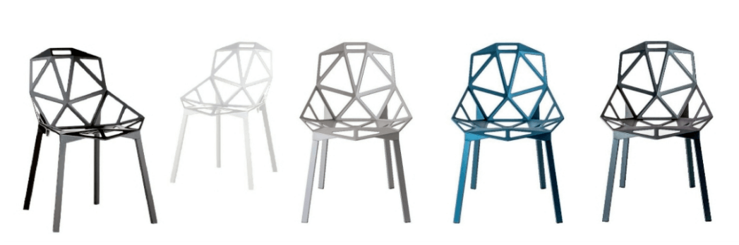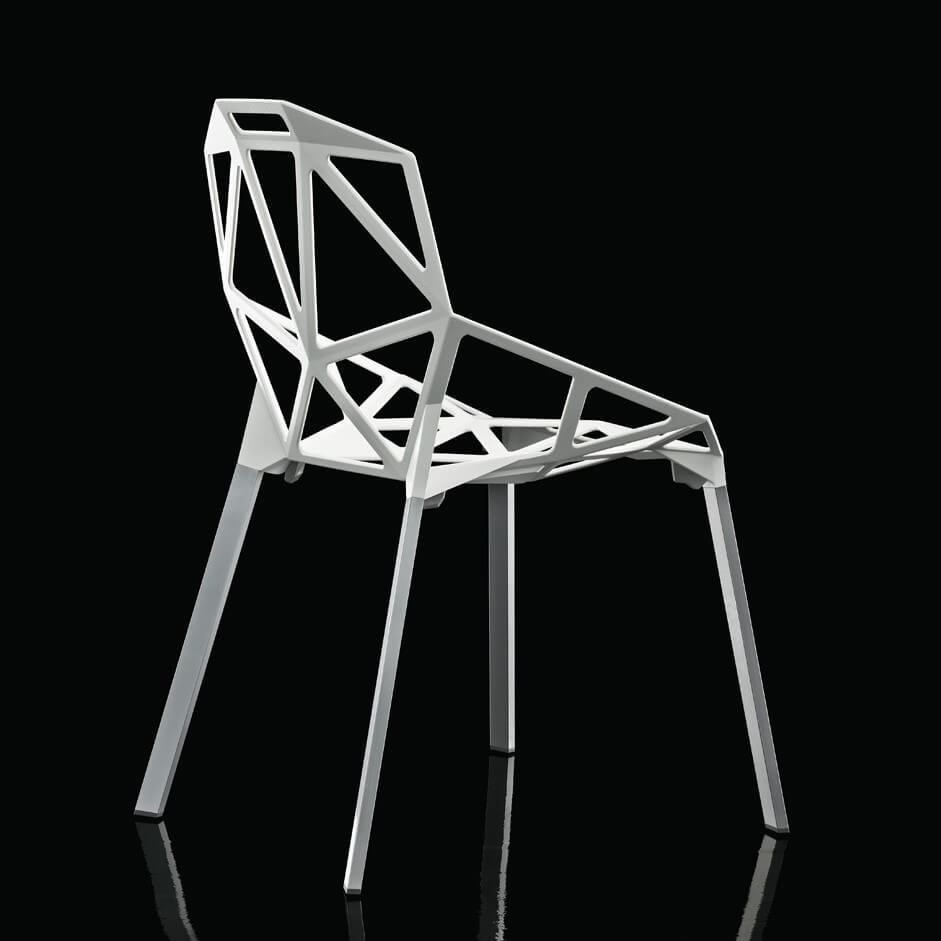 De Chair_One met 4-poots onderstel is ontworpen door Konstantin Grcic voor Magis. De stoel is geschikt voor buitengebruik en stapelbaar tot maximaal acht stoelen. De aluminium zitting is verkrijgbaar in diverse kleuren.